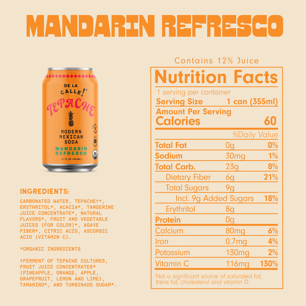 Our Mandarin Refresco soda is crafted with bold flavors and a touch of nostalgia. It delivers that just-right balance of sweetness and citrusy punch, all made with the real ingredients you love.